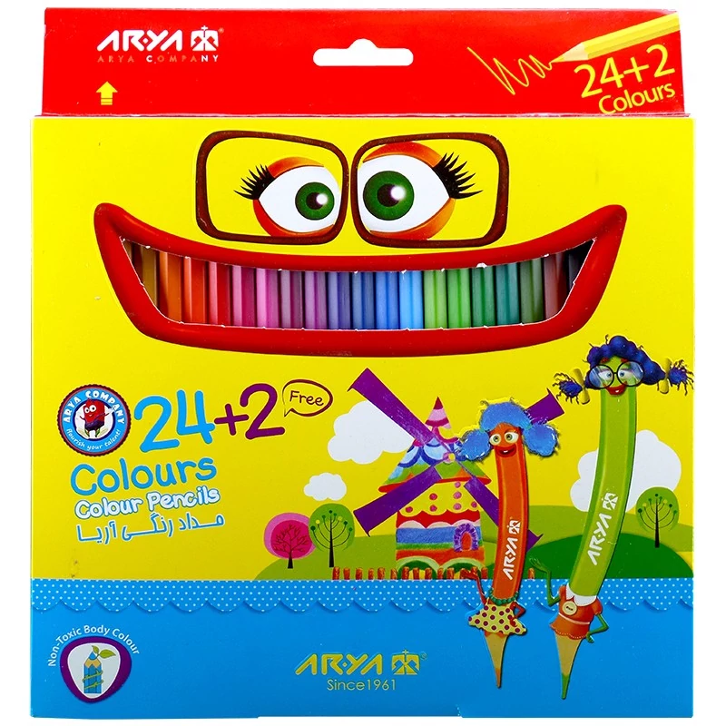 مدادرنگی 24 باضافه 2 رنگ آریا جعبه مقوایی