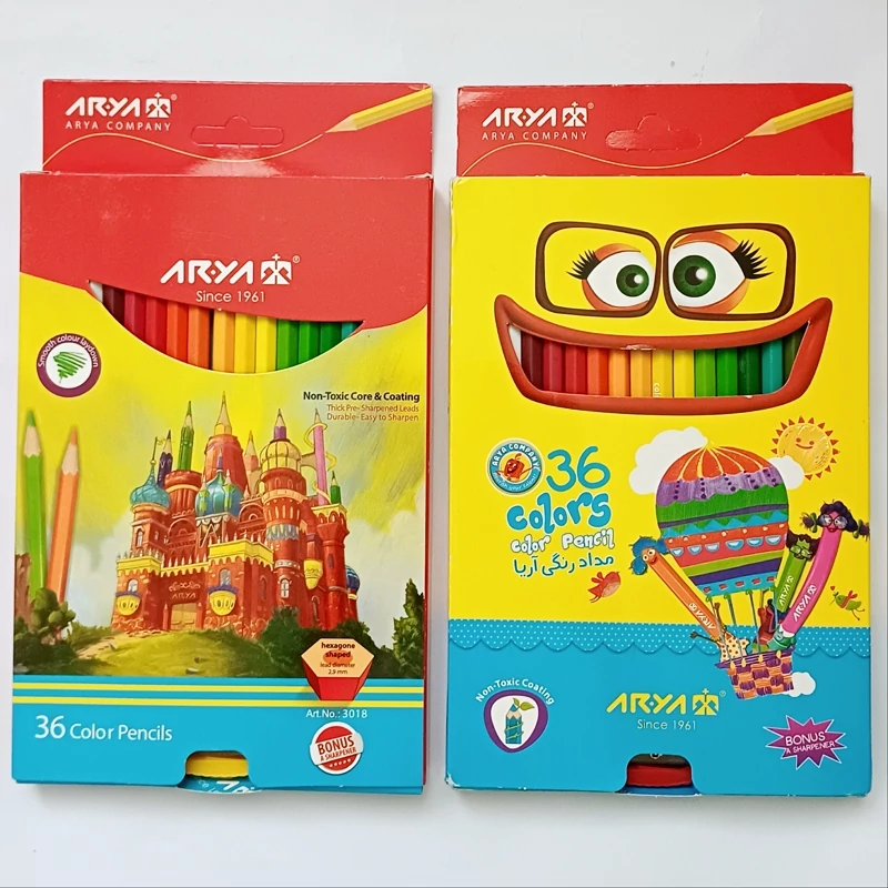 مدادرنگی 36 رنگ باضافه یک تراش آریا جعبه مقوایی