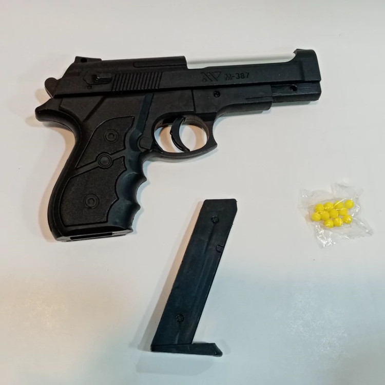 تفنگ کلت ساچمه ای بزرگ بادی و خشاب خور همراه یک بسته ساچمه