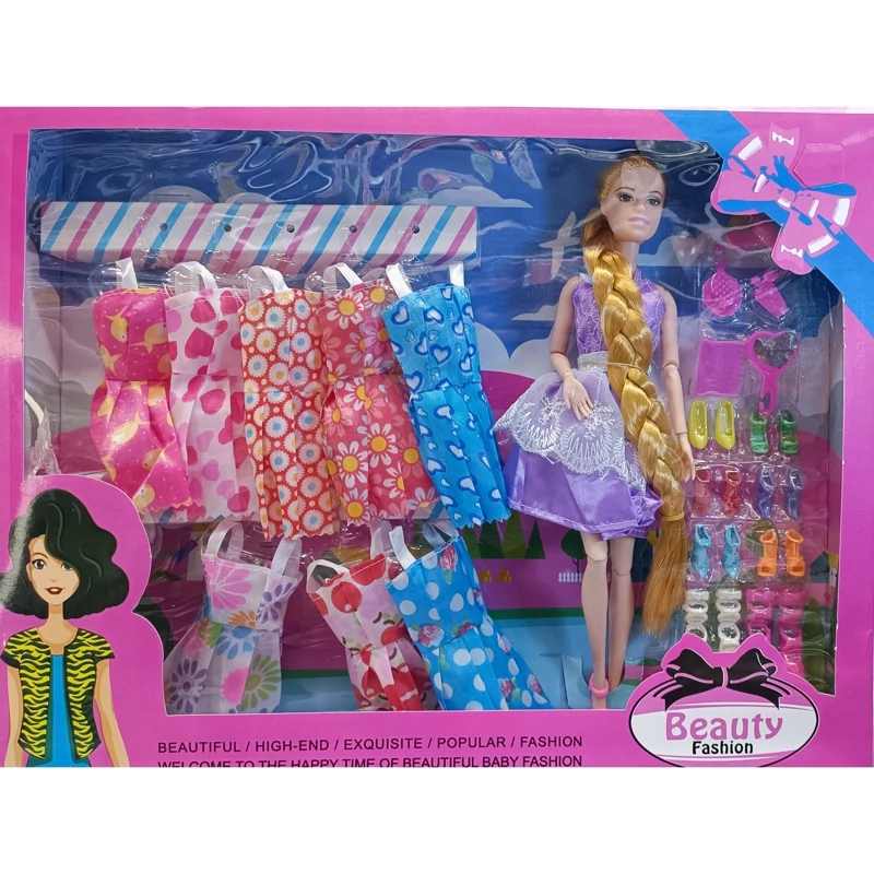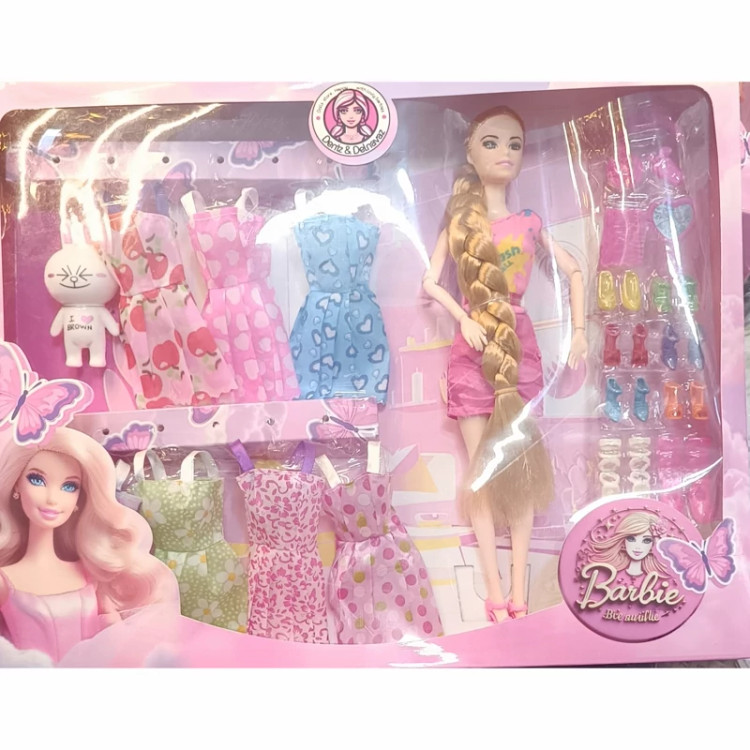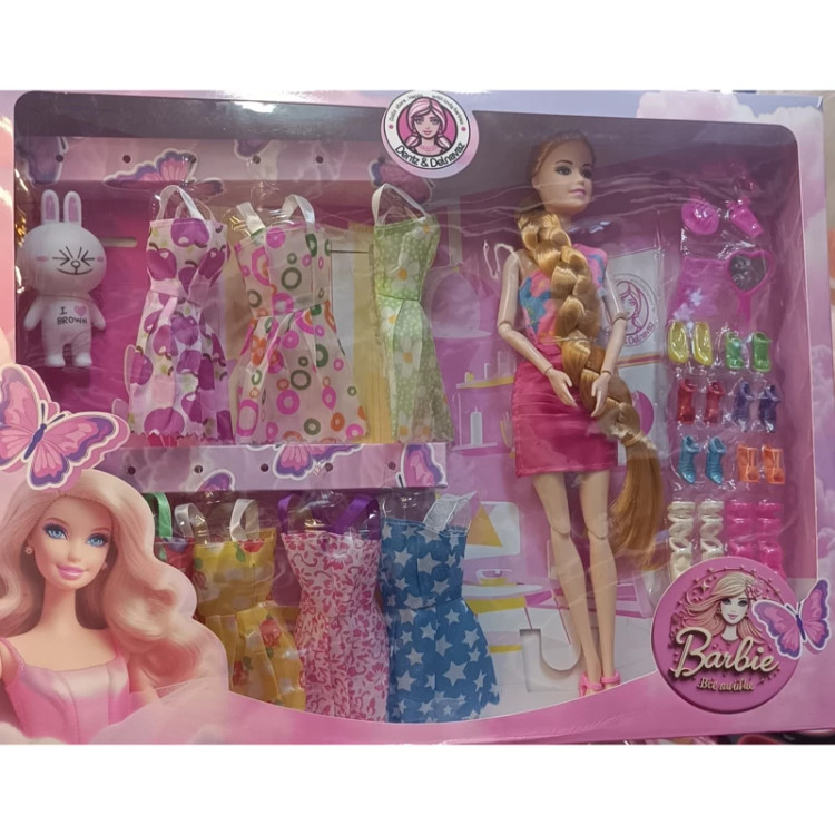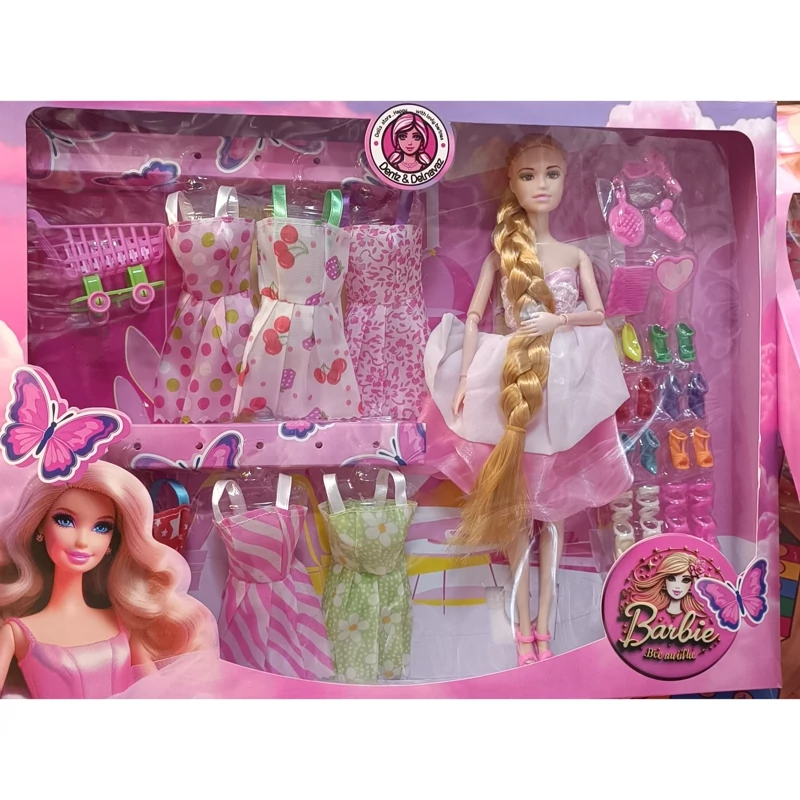 عروسک باربی مفصلی درجه یک همراه لوازم و لباس و کفش کلکسیونی