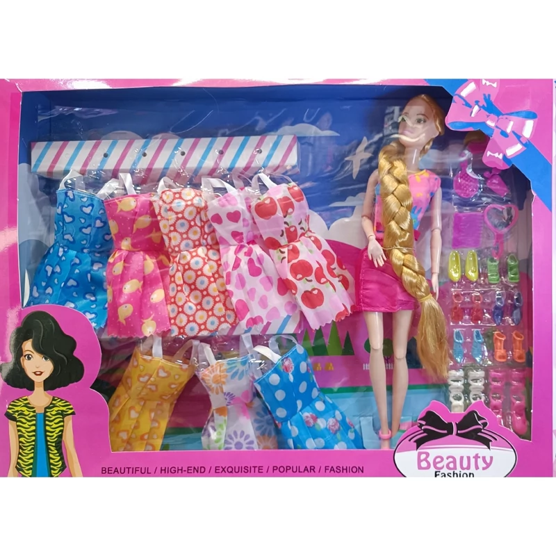 عروسک باربی مفصلی درجه یک همراه لوازم و لباس و کفش کلکسیونی