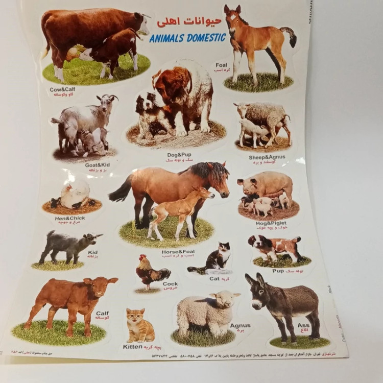 برچسب حیوانات اهلی اموزشی پشت چسب دار مناسب مدرسه و کاردستی برچسب آموزشی