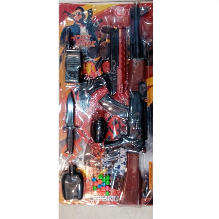 ست تفنگ کلاشینکف و کلت تیر پران بادی همراه لوازم چاقو و نارنجک و بیسیم