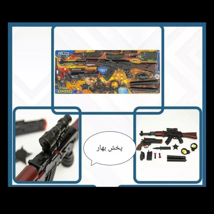 تفنگ بادی تیر پران بزرگ کلاشینکف دو حالته به همراه بی سیم و نارنجک و خنجر و لانچیکو