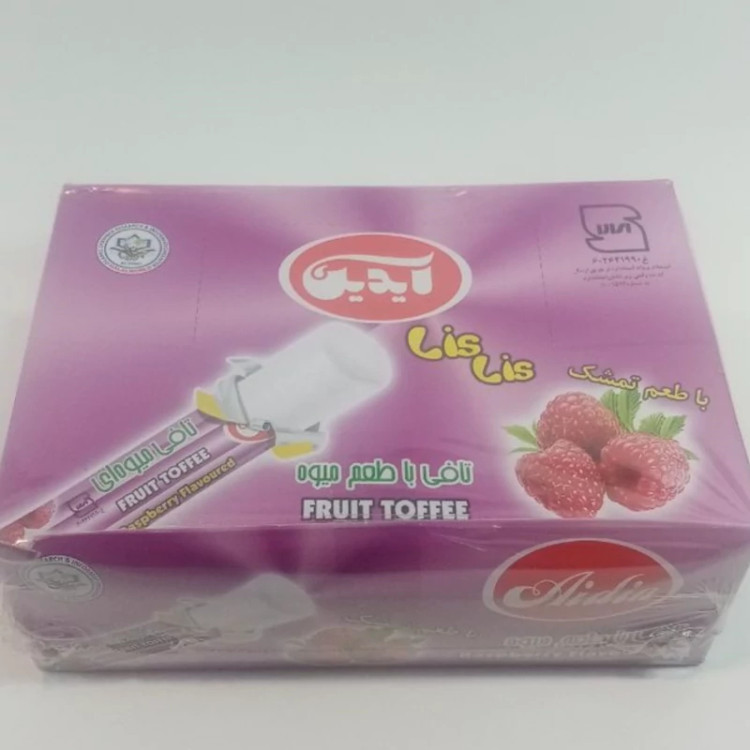 بسته تافی با طعم میوه ای وزن و تعداد تقریبی نیم کیلو و 100 عددی