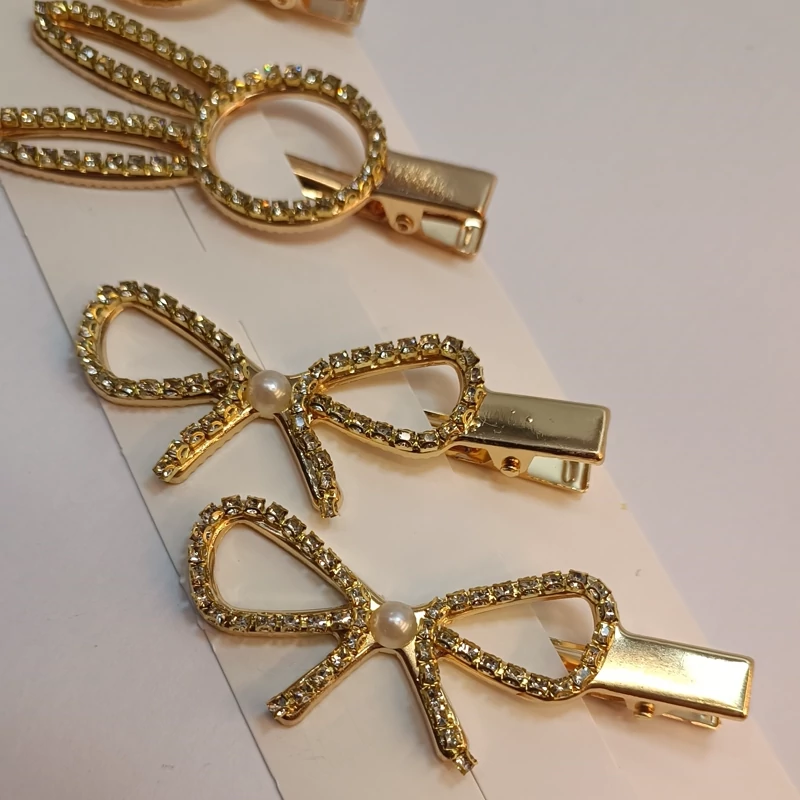 گیره مو پنس مو نگین دار مجلسی طلایی فانتزی