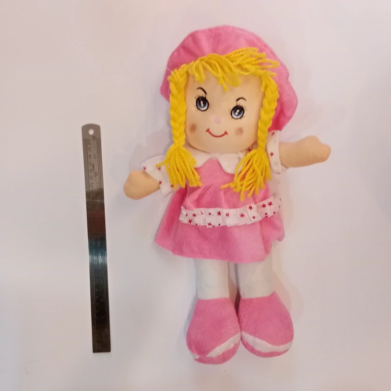 عروسک پارچه ای دخترانه لباس دار مو دار سایز 2