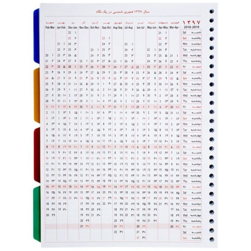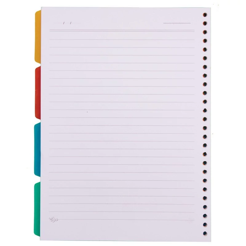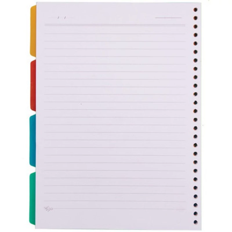 کاغذ کلاسور 100 برگ یک خطدارای 4 دیوایدر رنگیمخصوص کلاسور 26 سوراخدر ابعاد استاندارد 25.5×18.5 سانتی متر