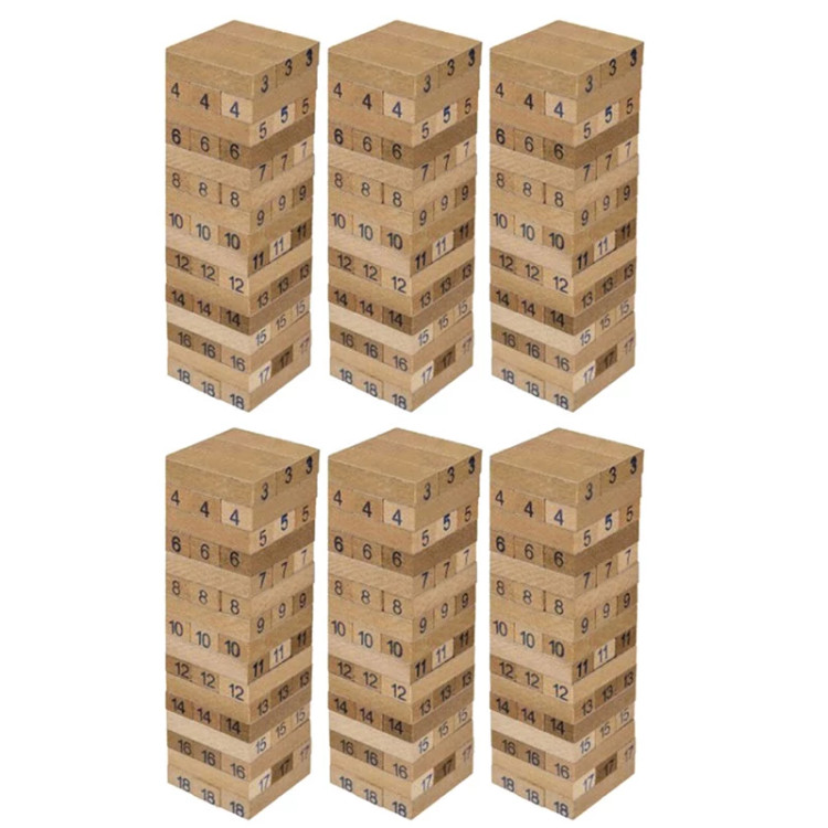 اقلام همراه: 6 عدد برج هیجان هرکدام دارای 48 عدد قطعه چوبی جنگا و 3 عدد تاس