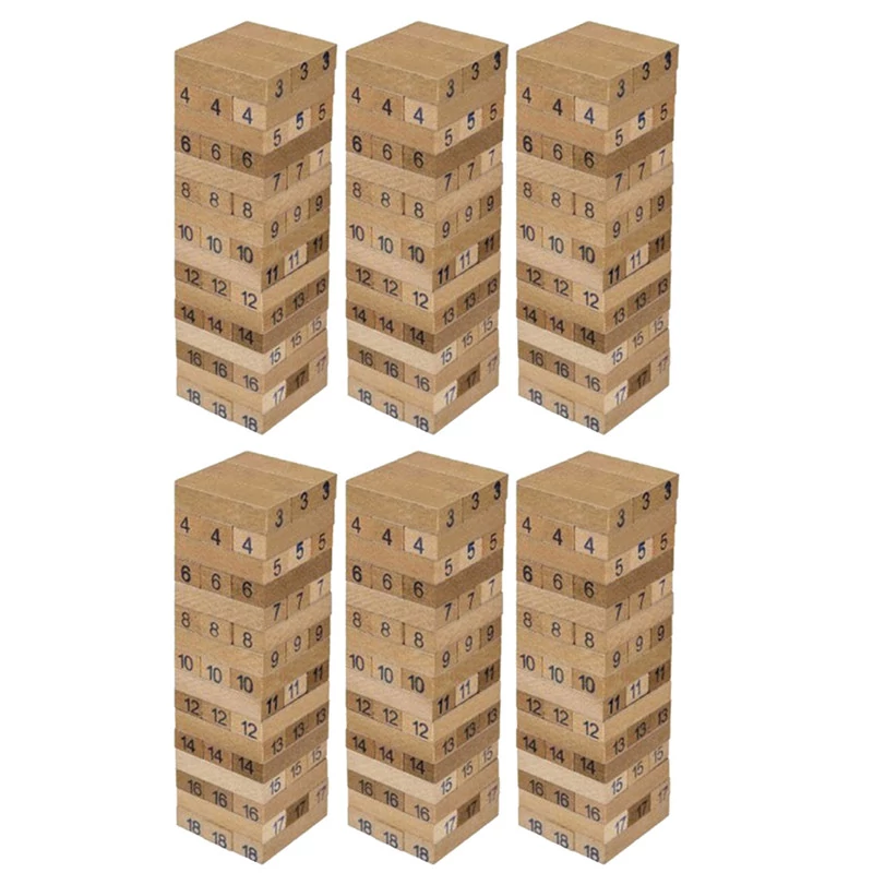 اقلام همراه: 6 عدد برج هیجان هرکدام دارای 48 عدد قطعه چوبی جنگا و 3 عدد تاس
