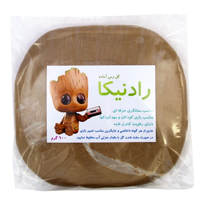خاک رُس به کانیهای طبیعی آگلومره شده شامل فیلوسیلیکات آلومینیوم آبدار گفته میشود که با افزودن رطوبت کافی ویژگیهای پلاستیک پیدا میکنند و با خشک شدن سفت می شود. در طبقهبندی خاکها، رس در گروه ریزدانه قرار میگیرد. ذرات رس معمولاً با اندازهٔ کوچکتر از 0٫002 میلیمتر تعریف میشوند. اما گاهی مواقع ممکن است ذراتی با اندازهٔ 0٫002 تا 0٫005 میلیمتر نیز رس تعریف شوند. ذراتی که بر حسب اندازه، در طبقهٔ رسها قرار میگیرند، لزوماً شامل کانیهای رس نمیشوند. رسها در مکانیک خاک به ذراتی اطلاق میشود که اگر با مقدار محدودی آب مخلوط شوند، خاصیت خمیری از خود نشان میدهند. خمیری بودن، خاصیت بتونه شکلی است که رس مخلوط با آب از خود نشان میدهد. پس هر خاک ریزی رس نیست و باید از معدن آن این خاک تهیه شود. گل رس رادنیکا تهیه شده از گل رس خالص و با کیفیت معدنی می باشد که ناخالصی چه از بابت زباله ها و چه از بابت مخلوط شدن خاک های دیگر که موجب تبدیل شدن گل رس به گل گلدانی می شوند را ندارد. گل رس رادنیکا دارای رطوبت کنترل شده و استاندارد می باشد و این موضوع باعث می شود به دست فرزند دلبندتان نچسبد. برای انجام کارهای حرفه ای استفاده از آب الزامیست. نحوه نگهداری بعد از باز شدن محصول: فقط کافیست از تبخیر آب محصول جلوگیری کنید. در صورت خشک شدن جزئی بعد از استفاده با مقداری کمی آب (در حد چند قطره) مخلوط کرده و در کیسه فریزر نگهداری کنید. نحوه خشک کردن محصول تولیدی: خشک کردن به آهستگی و به طور مساوی بهترین روش است. محصولتان را روی جایی بگذارید که هوا در اطرافش در جریان باشد. ظروف سفالی را با استفاده از دستگاه های گرم کن یا دمنده هایی با جریان هوای گرم مثل سشوارها به سرعت خشک نکنید. چنین کاری می تواند دلیل ترک خوردن سفال به خصوص وقتی گل به سفتی چرم یا خشک تر است باشد. وزن محصول: 500گرم (امکان 10 گرم خطا در وزن کشی وجود دارد)