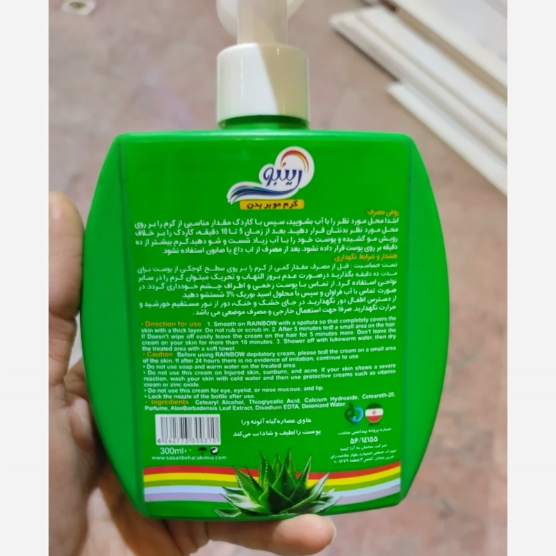 کرم موبر بدن پمپی رینبو با حجم 300 میلیلیتر، محصولی مؤثر برای از بین بردن موهای زائد بدن است. این کرم با فرمولاسیونی حاوی عصاره آلوئهورا و اسانس رز، علاوه بر حذف موهای ناخواسته، به تسکین و نرمی پوست کمک میکند.
