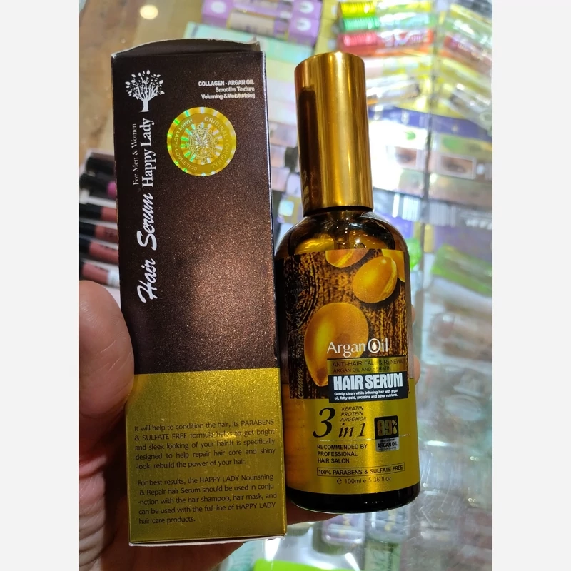 سرم مرطوبکننده و تقویتکننده مو هپی لیدی با فرمول 3‑in‑1 و روغن آرگان خالص، مو را از ریشه تا ساقه تغذیه، نرم و درخشان کرده و از وز و گرهخوردگی جلوگیری میکند.