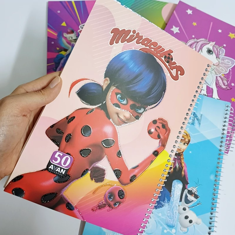 دفتر 50 برگ سیمی اکلیلی آوان خط دار طرح های دخترانه