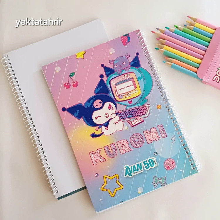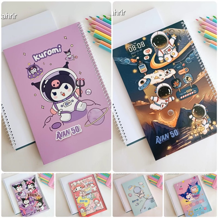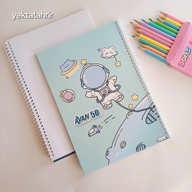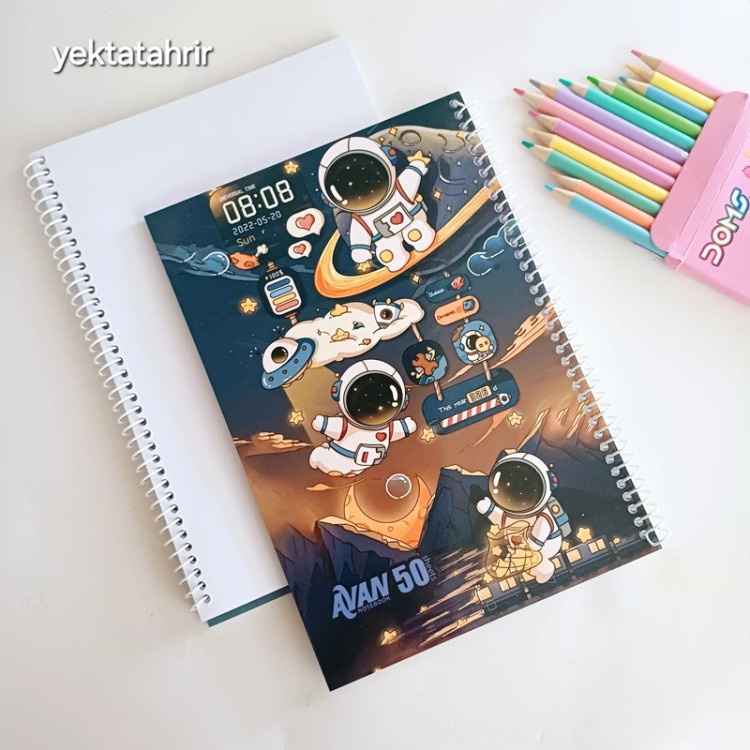 دفتر نقاشی آوان سیمی 50 برگ جلد گلاسه طرح های فانتزی کرومی ملودی و فضانورد