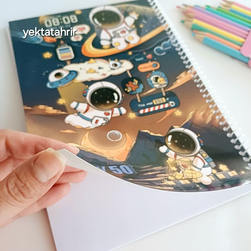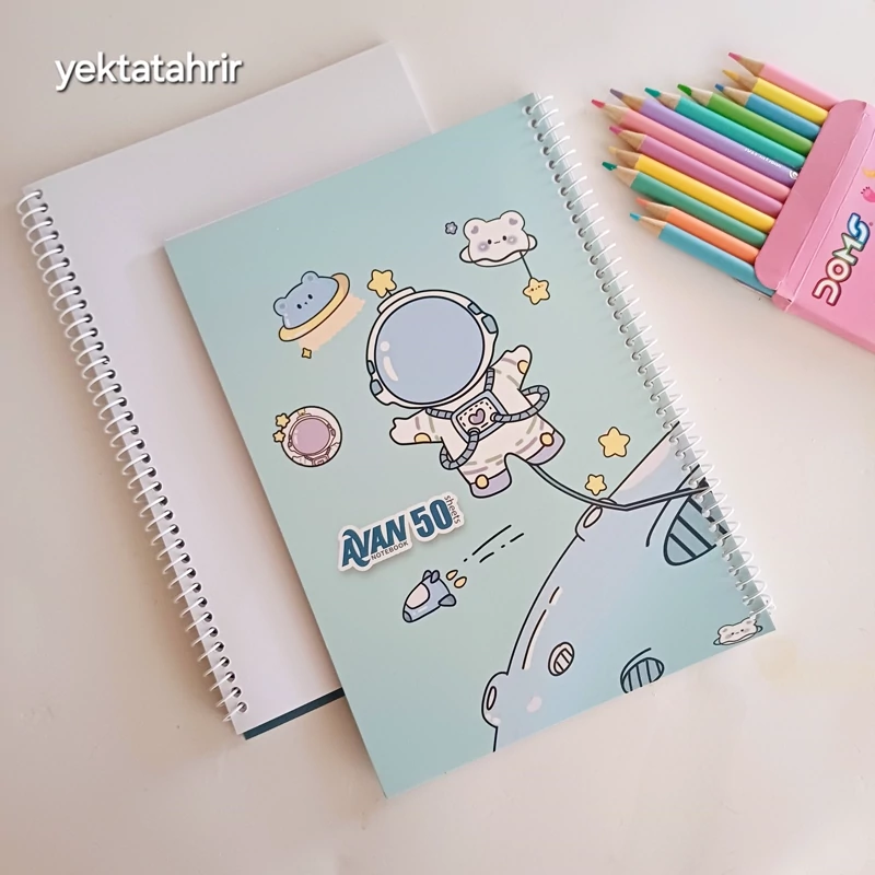 دفتر نقاشی آوان سیمی 50 برگ جلد گلاسه طرح های فانتزی کرومی ملودی و فضانورد