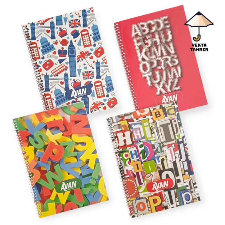 دفتر زبان سیمی 50 برگ آوان 4 خط جلد گلاسه ضخیم طرح های فانتزی کاغذ 70 گرم لبه گرددفتر زبان سیمی 50 برگ آوان 4 خط جلد گلا