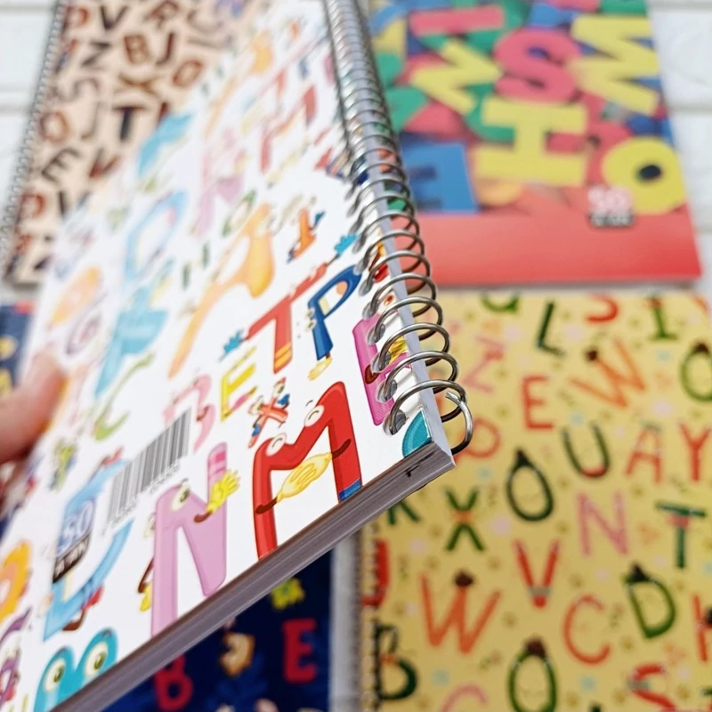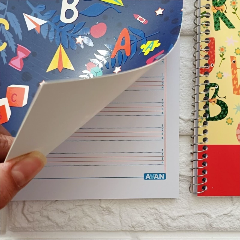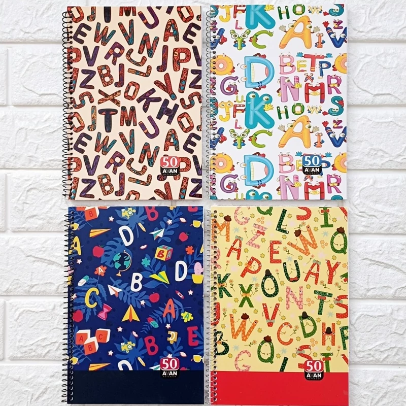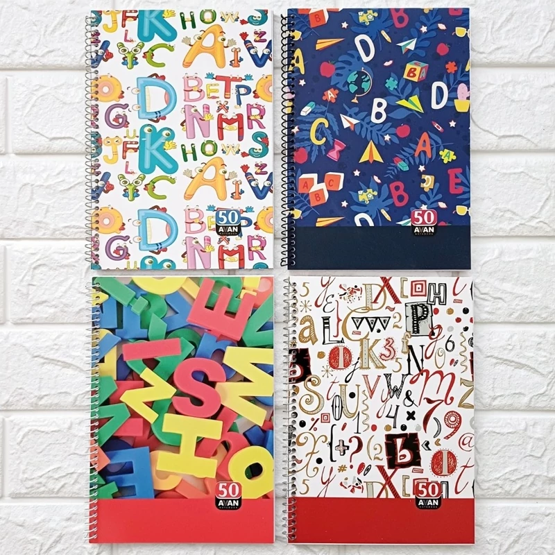 دفتر زبان سیمی 50 برگ آوان 4 خط جلد گلاسه ضخیم طرح های فانتزی کاغذ 70 گرم لبه گرددفتر زبان سیمی 50 برگ آوان 4 خط جلد گلا