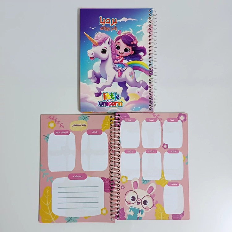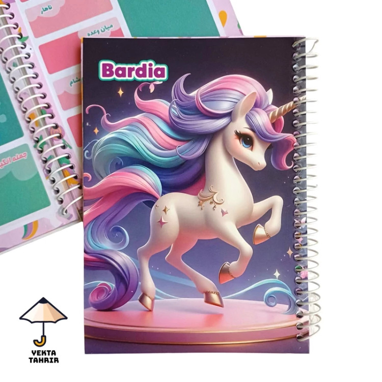 دفتر پلنر سیمی برند بردیا طرح یونیکورن جلد گلاسه دارای موضوع بندی برنامه های روزانه کد11