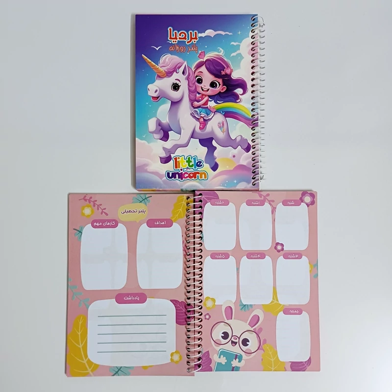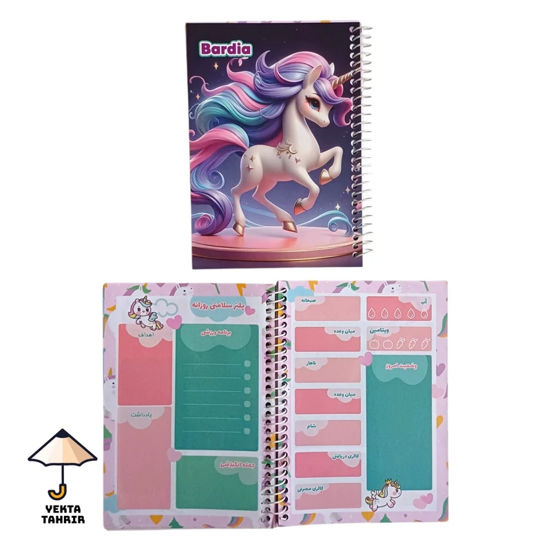 دفتر پلنر سیمی برند بردیا طرح یونیکورن جلد گلاسه دارای موضوع بندی برنامه های روزانه کد11