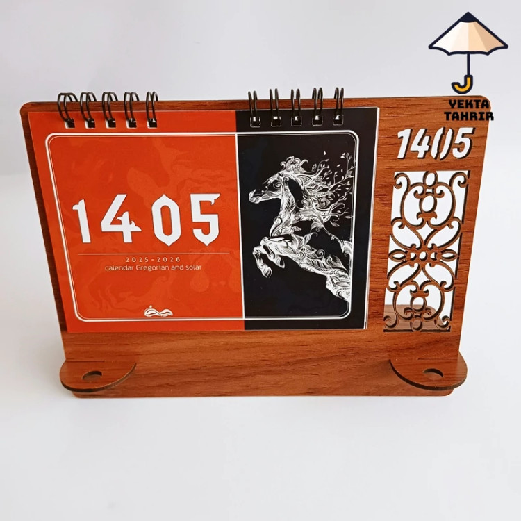 تقویم رومیزی 1405 چوبی معرق کاری تقویم رومیزی تودولیست طرح اسب نشان سال
