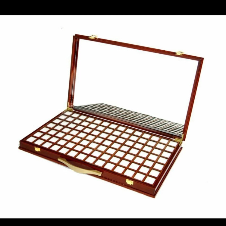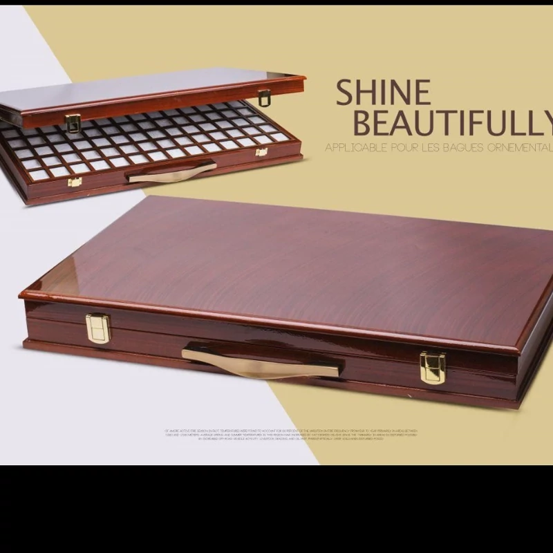 جعبه انگشتری 98 عددی کلکسیونی چوب پولیستر دسته دار باکیفیت فوق العاده بالا داخل آیینه