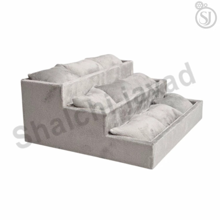 استند جواهرات بالشتکدار سه پله طوسی روشن ۹ خانه یکی از کاربردیترین و پرفروشترین تجهیزات نمایش جواهرات و ساعت در فروشگاههای طلا و جواهر، گالریها و ویترینهای حرفهای است.