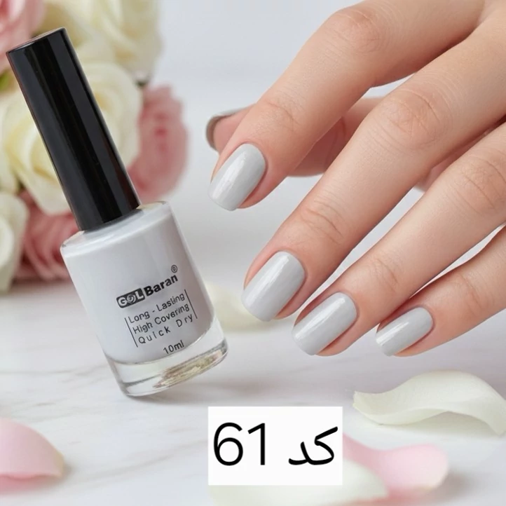 لاک ناخن گلباران جلوه براق و درخشندگی بسیار عالی دارد که به مدت طولانی روی ناخن ثابت میماند.