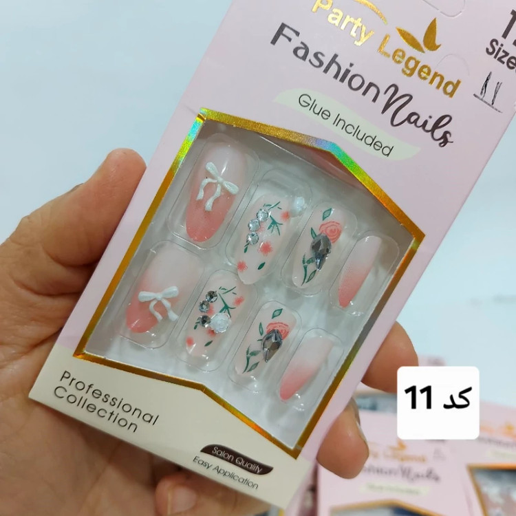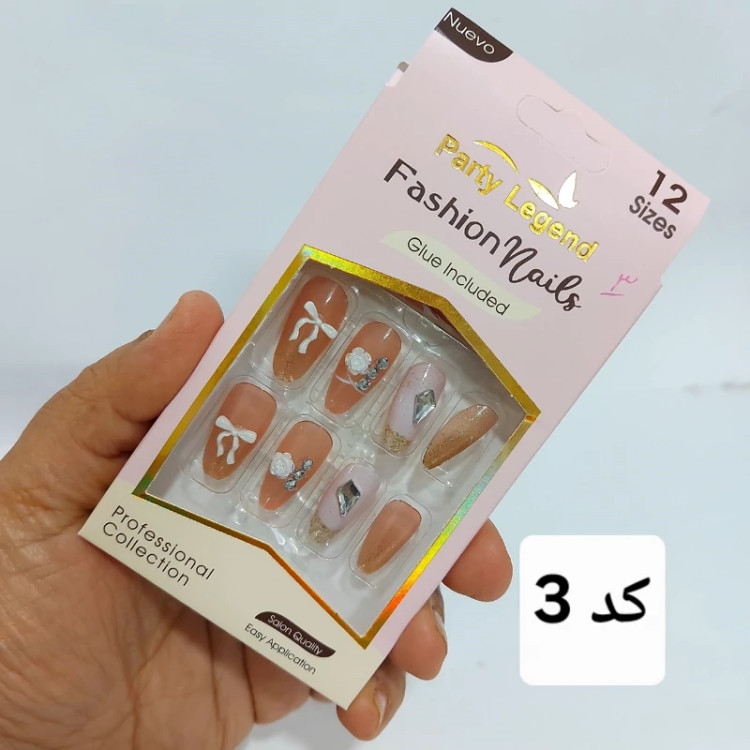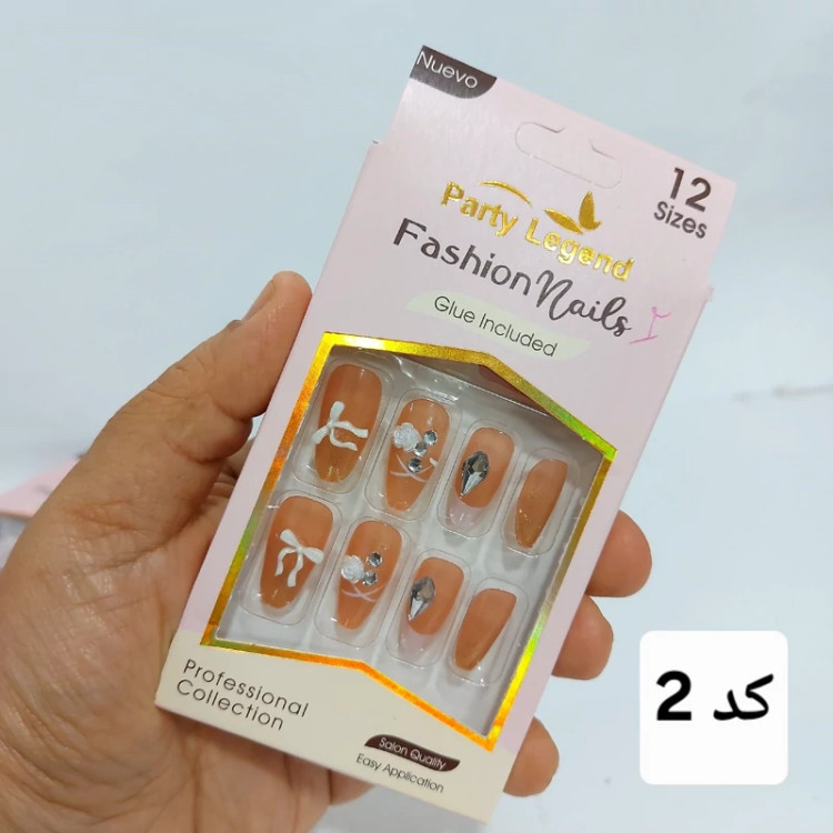 ناخن مصنوعی 12 عددی برجسته و طرح دار و نگین دار مدل فشیون