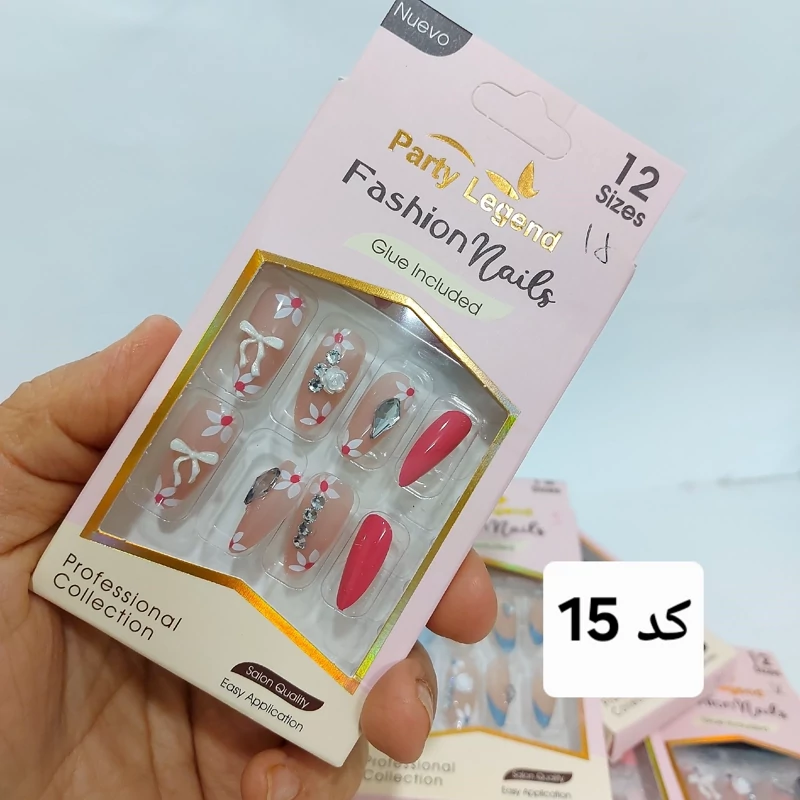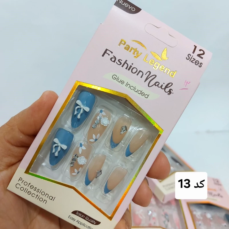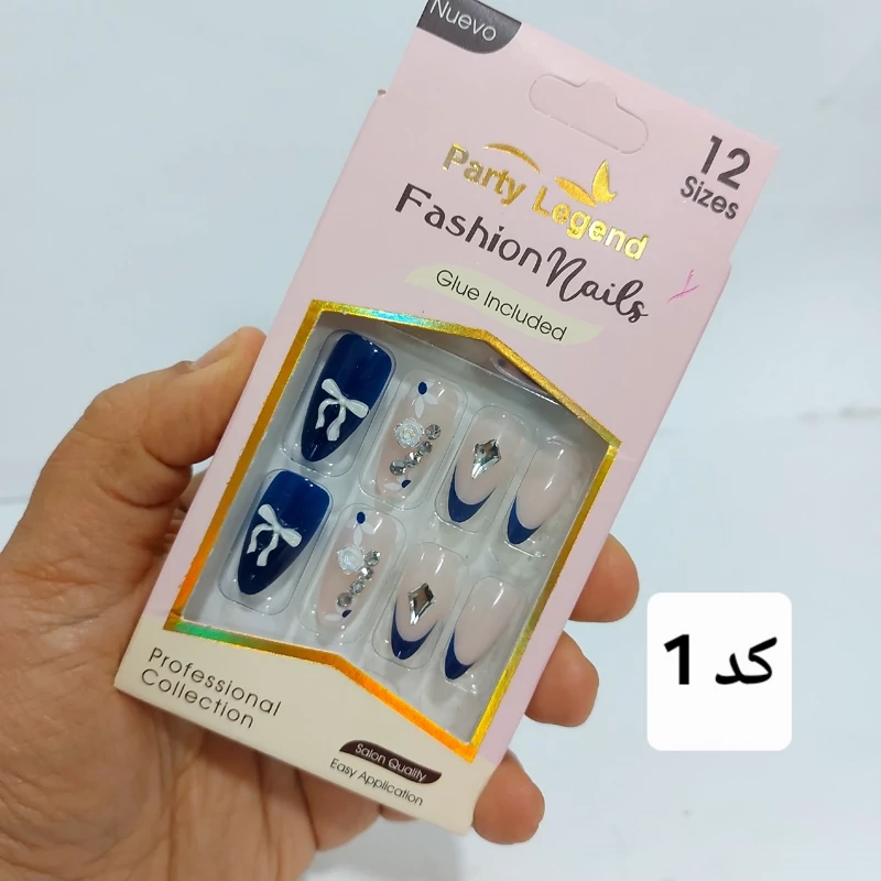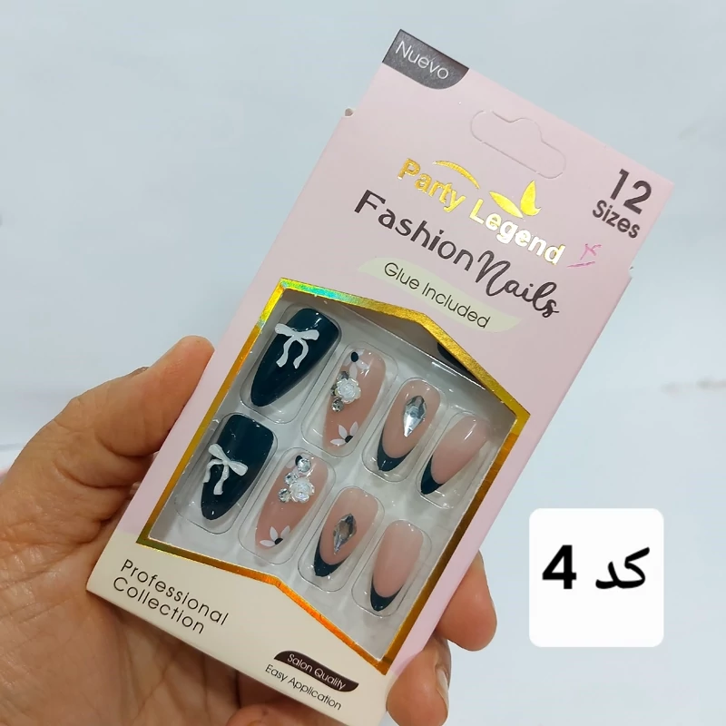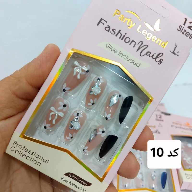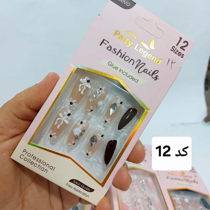 ناخن مصنوعی 12 عددی برجسته و طرح دار و نگین دار مدل فشیون