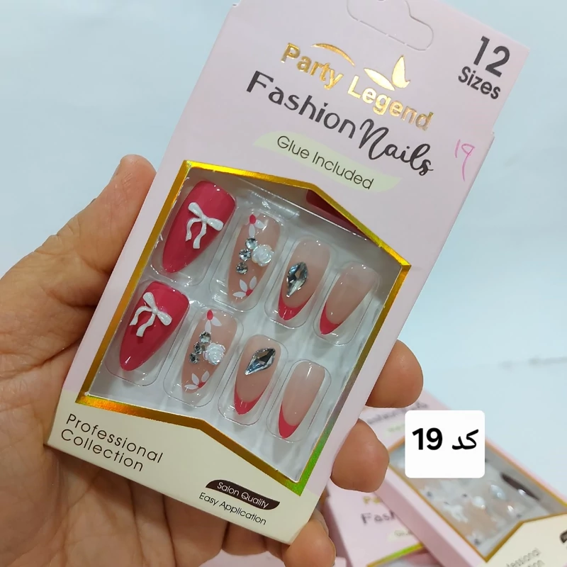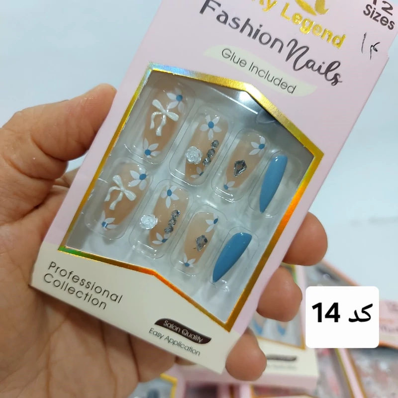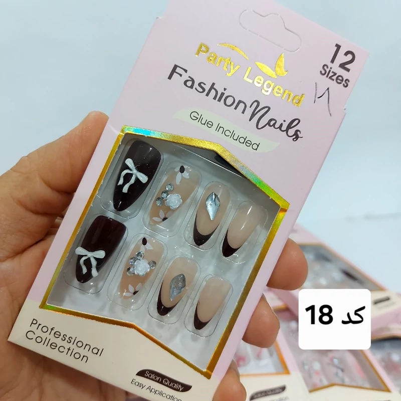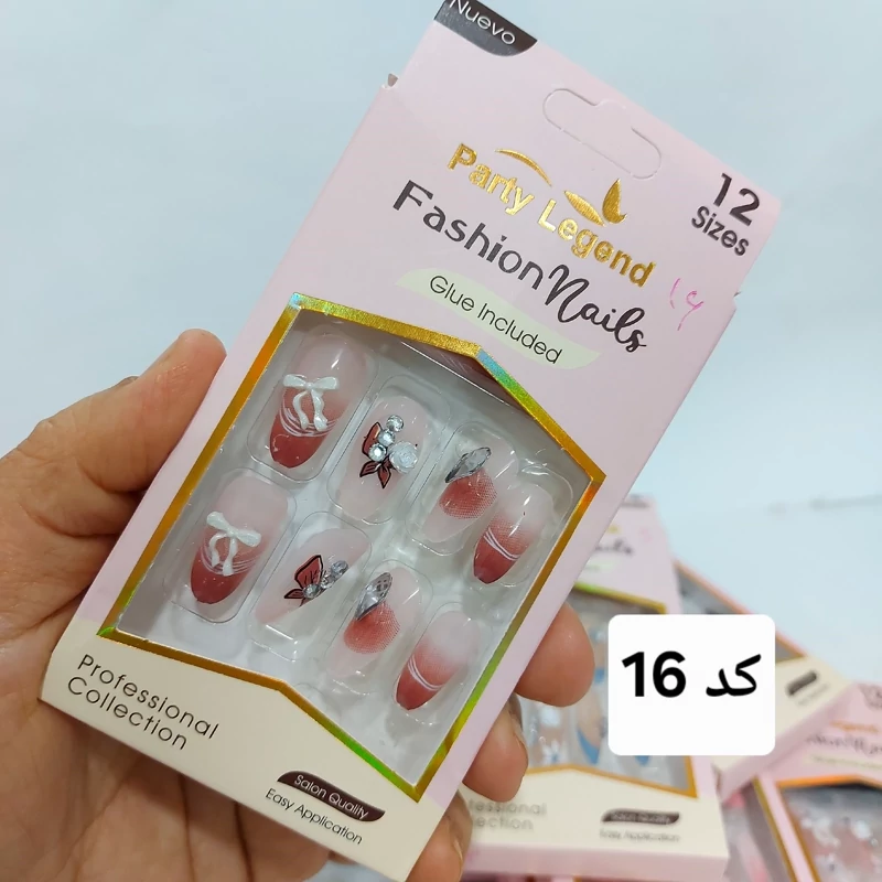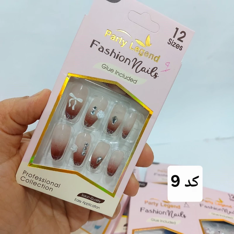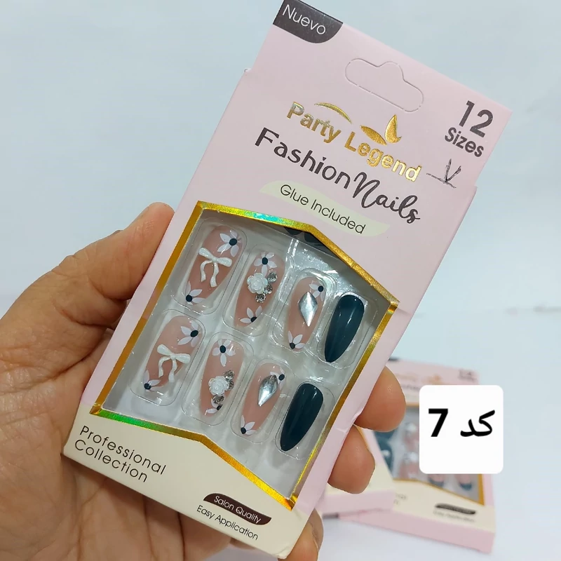 ناخن مصنوعی 12 عددی برجسته و طرح دار و نگین دار مدل فشیون