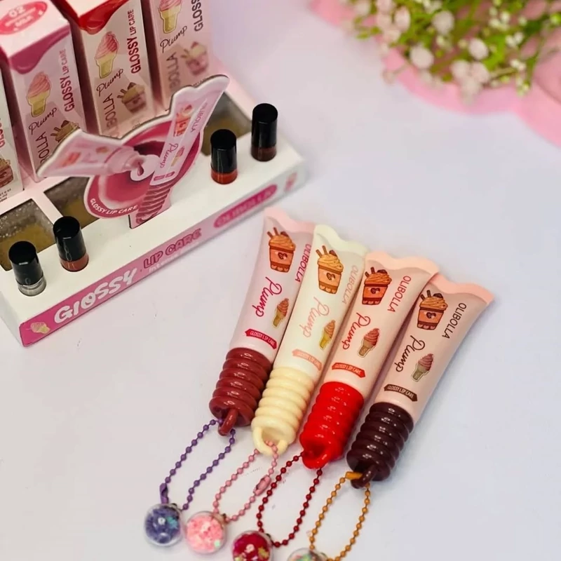 طراحی بستنی و شکلاتی، آویز کریستالی براق و رنگ های دلبر باعث شده این لیپ گلاس فقط یه وسیله آرایشی نباشه، یه اکسسوری بامزه هم باشه 🎀