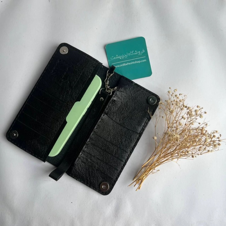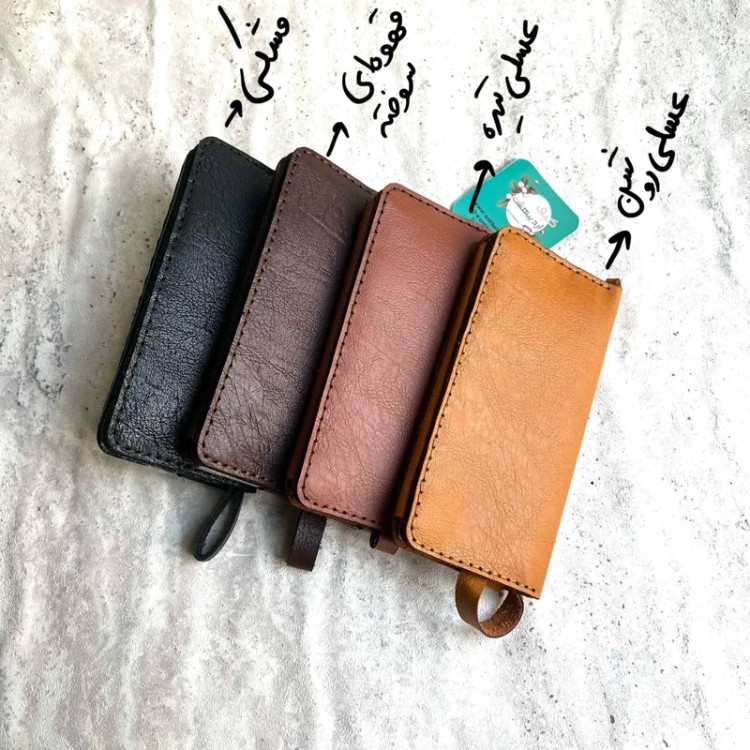 طرح کیهان اصلی دست دوز دارای جای موبایل کارت پول مدارک داخل چرم دوخت با بهترین نخ زمینس 2 سال ضمانت چرم