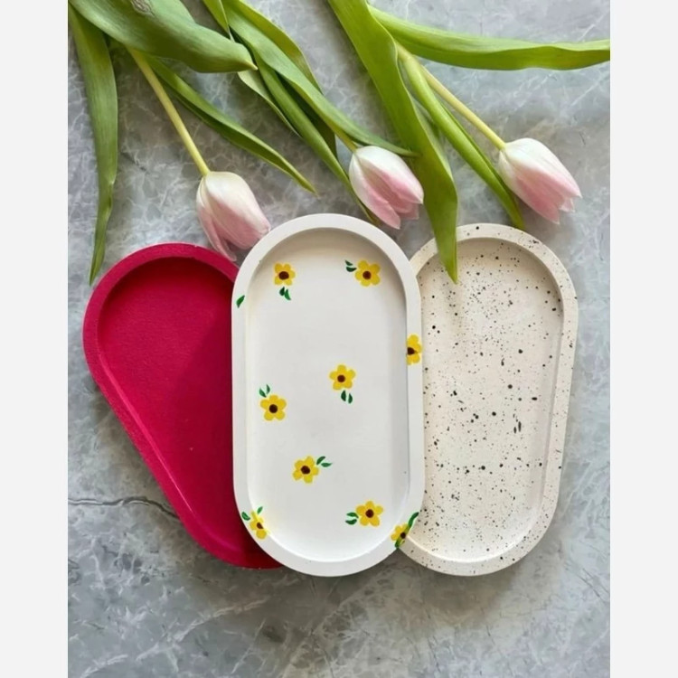 قالبی حرفهای و کاربردی برای ساخت سینیهای دکوراتیو با استفاده از پودر سنگ هنری، رزین و اپوکسی. طراحی بیضی و لبهدار این قالب امکان ساخت قطعاتی با ظاهر شیک و کاربردی را فراهم میکند.