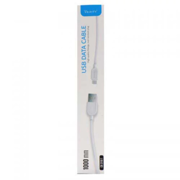 کابل شارژ تایپ سی Verity مدل CB 3110 T با طول 100 سانتی متر یکی از محصولات با کیفیت برند وریتی که به دلیل