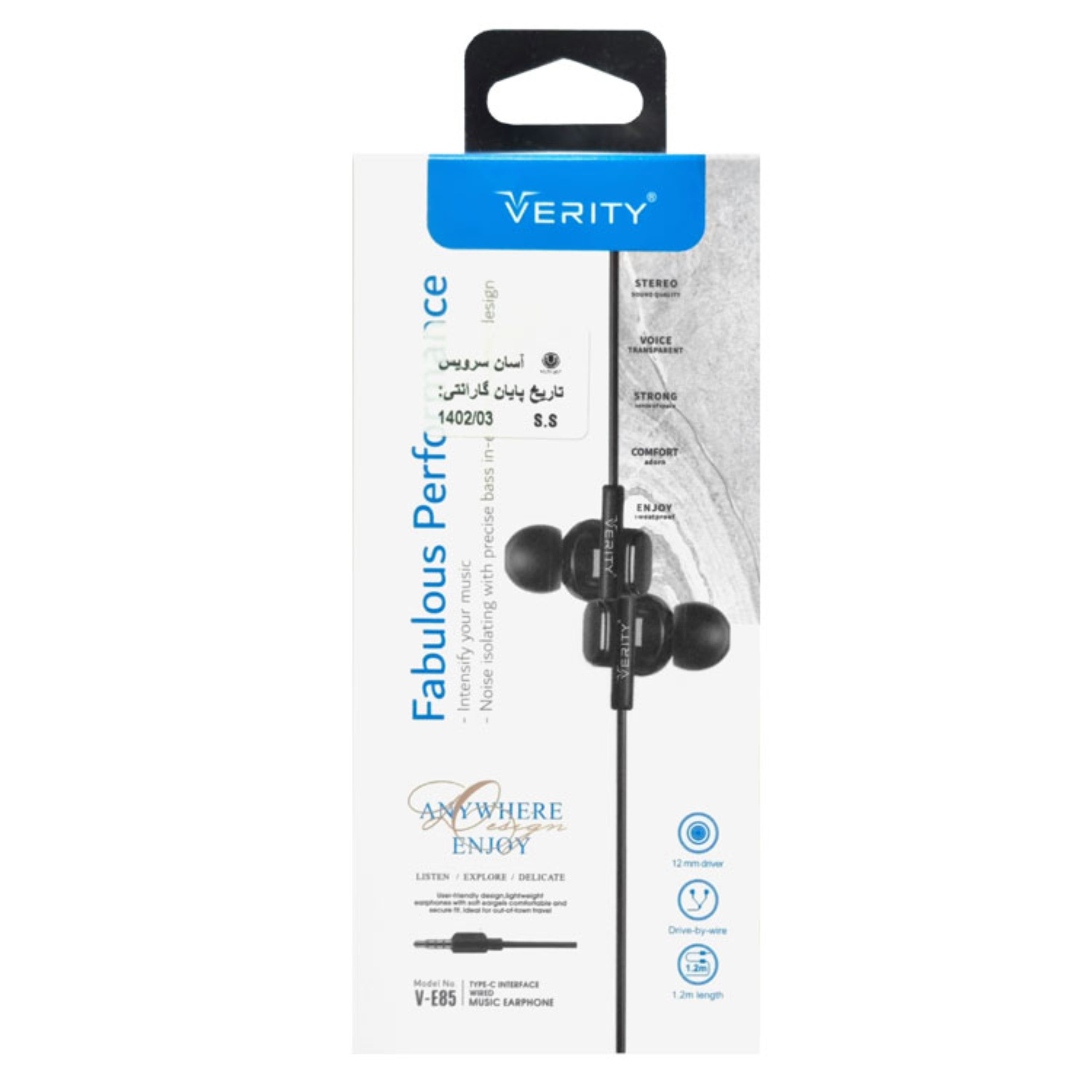 هندزفری VERITY مدل E85 مشکی
