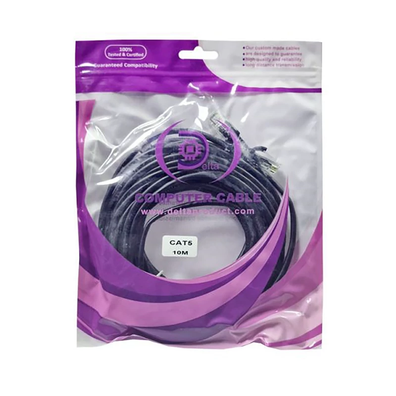 کابل شبکه 10 متری Delta مدل CAT5 رنگ کابل مشکی