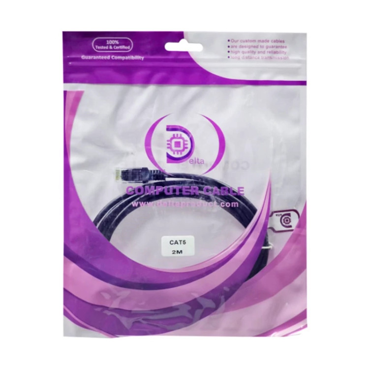 کابل شبکه 2 متری Delta مدل CAT5 در رنگ مشکی و کیفیت قابل قبول تولید و عرضه شده است