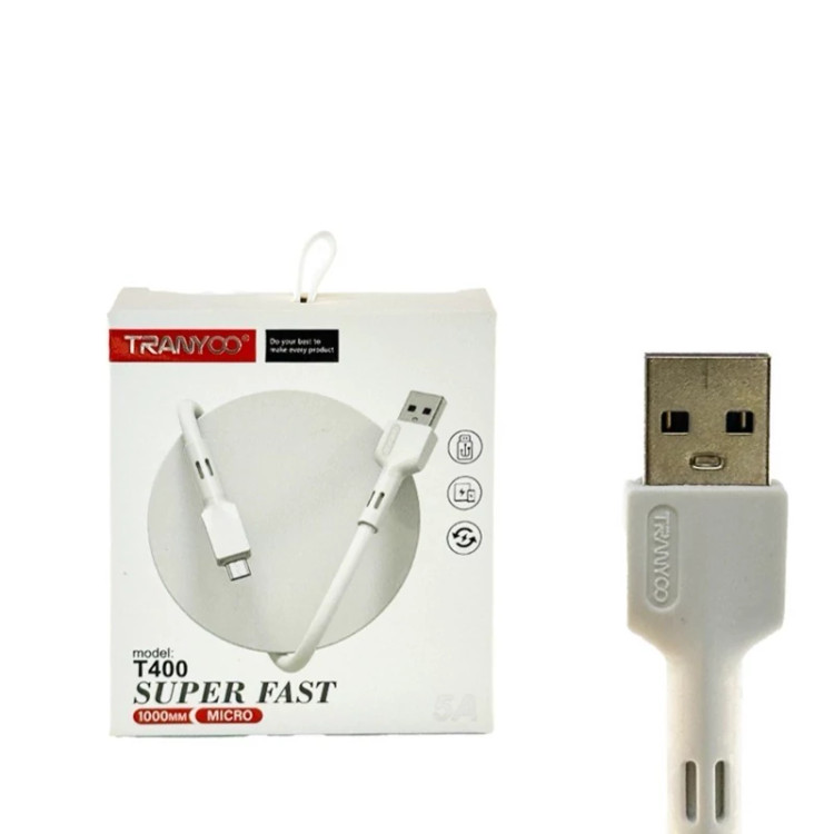 کابل شارژ ترانیو مدل TRANYOO T400 Type C قادر است در کنار شارژ سریع، دادهها و اطلاعات مورد نظر کاربران را نیز با سرعت بالایی انتقال دهد، همچنین این محصول میتواند گوشی موبایل شما را با شدت جریان عبوری 5 آمپر و ولتاژ 12 ولت شارژ نماید.