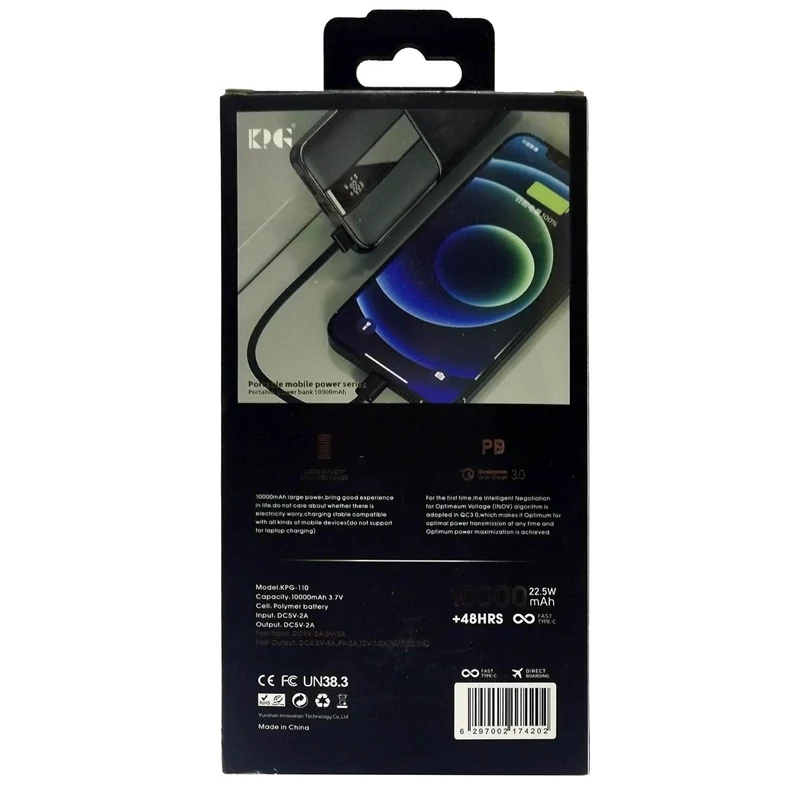 ظرفیت : 10000 میلی آمپر ساعت 3.7 ولت