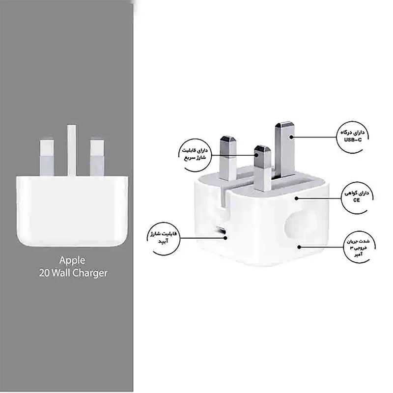 آداپتور 20 وات ایفون 12 پین کیفیت بالا اصلی به شرط دستگاه اپل استور