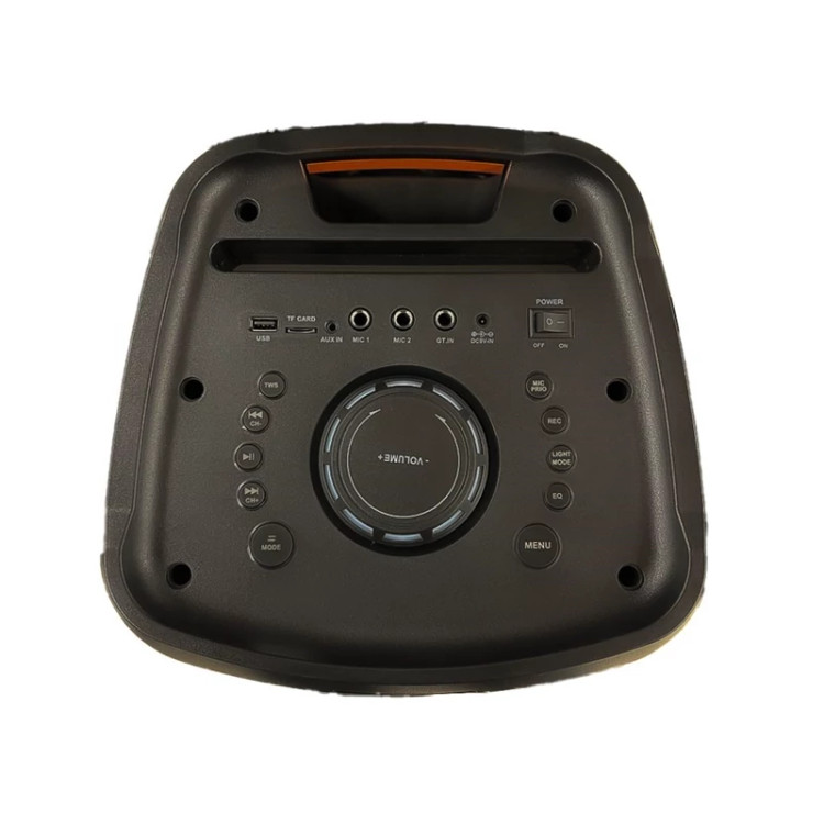 ⚜️ این اسپیکر دارای قابلیت رقص نور رنگی، دو ووفر 8 اینچی و ورودی میکروفون بوده و به راحتی قابل حمل میباشد.