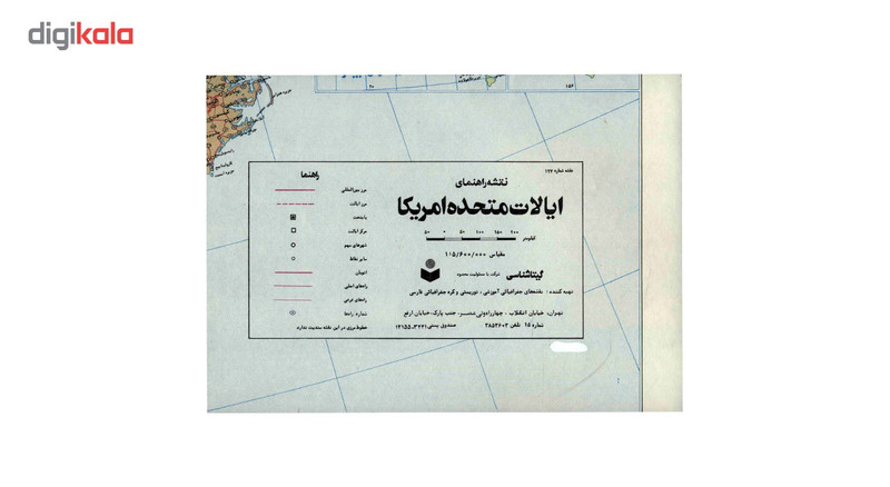 نقشهی راهنمای ایالات متحده امریکا را «موسسهی جغرافیایی و کارتوگرافی گیتاشناسی» تهیه و تدوین کرده است. نقشهی دیواری که پیش رو دارید، در مقیاس 1:5600000 و در اندازهی 70 × 100 سانتیمتر تنظیم شده است. در این نقشه مرزهای بینالمللی، مرز ایالتها، پایتخت، شهرهای مهم، مراکز ایالات، اتوبانها، راههای اصلی و راههای فرعی نشان داده شده است.