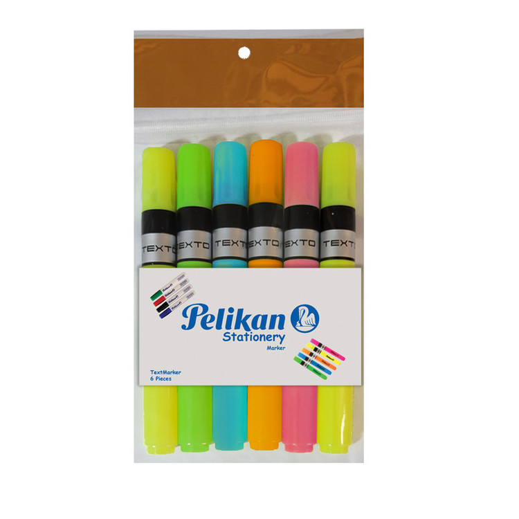 این بسته حاوی 6 ماژیک علامتگذار (هایلایت) پلیکان در رنگ های مختلف است بسته 6 تایی چند رنگ حاوی 2 عدد ماژیک زرد، یک عدد ماژیک نارنجی ، یک عدد ماژیک سبز ، یک عدد ماژیک آبی و یک عدد ماژیک صورتی می باشد