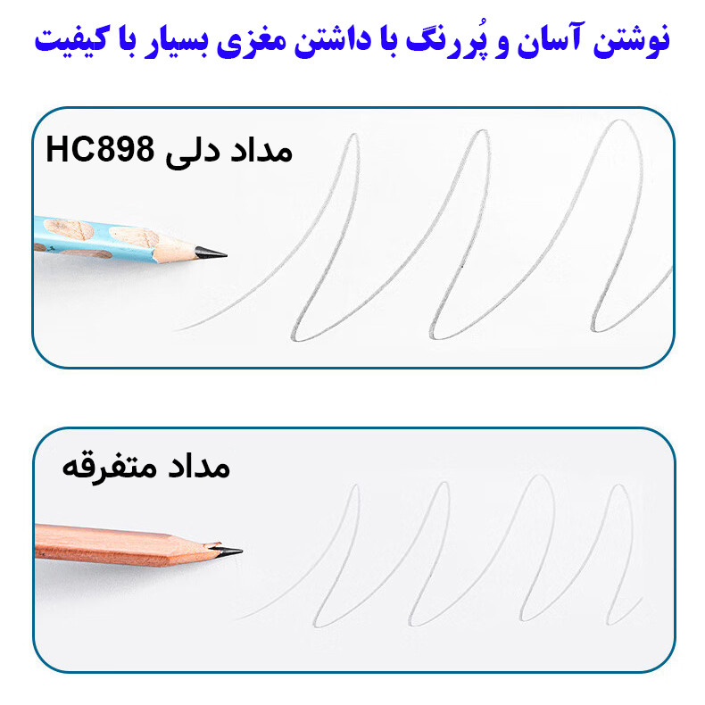 کشور سازندهچیننوعمداد مشکیابعاد18x5x2 سانتیمتروزن64 گرمطول بدنه175 میلیمتردرجه سختی نوکHBفرم سطح مقطعمثلثجنس جعبهمقواییتعداد موجود در بسته12رنگچند رنگ