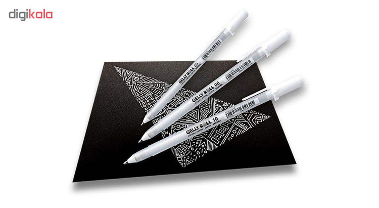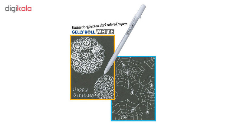 تولید کشور ژاپن - رنگ روان نویس سفید روشن و واضح - نوشتن به صورت یکنواخت از ابتدا تا انتهای آن - جوهر ژله ای با ضخامت 0.8 میلی متری - مناسب طراحی روی کاغذ و یا مقوای مشکی
