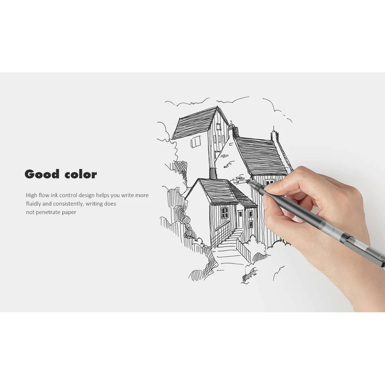 مخزن جوهر 4 برابر بزرگتر از خودکار معمولی تزریق مستقیم جوهر از مخزن دارای جوهر شرکت ژاپنی Mikuni نوک 0.5mm وزن : 0.0850 kg بسته ی 10 عددی