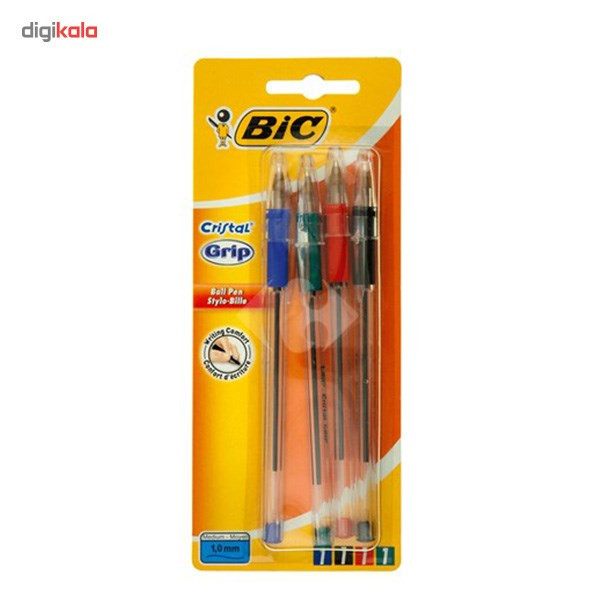 بستهی 4 تایی خودکار بیک، در رنگهای آبی، مشکی، قرمز و سبز