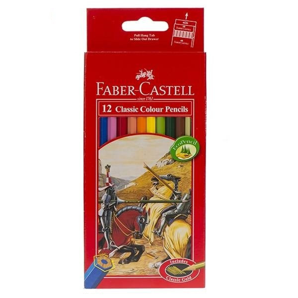 یکی از مداد رنگیهای مشهور در دنیا، «مداد رنگی کلاسیک فابر کاستل» است. بدنهی این مداد رنگی به کلاسیکترین شکل ممکن مداد – یعنی ششضلعی- طراحی و از جنس چوب ساخته شده است. این بدنهی ششضلعی به مداد شکل ارگونومیکی داده است که در استفادهی طولانیمدت، دست را خسته نمیکند و به آن آسیبی نمیزند. ششضلعیبودن بدنه از لیزخوردن مداد در دست یا روی میز هم جلوگیری میکند. نوک این مدادها دربرابر فشار بسیار مقاوم است و نمیشکند. بهعلاوه تمامی رنگهای موجود در این بستهی 24عددی، درخشان و شفاف هستند. این رنگها را میتوان بهسرعت و بهآسانی با هم ترکیب کرد. مزیت مهم این مداد رنگیها، دوام رنگشان است. با این ویژگی شما میتوانید نقاشیهای کودک خود را برای سالهای طولانی نگه دارید. مداد رنگی کلاسیک فابر کاستل کاملا غیرسمی است و شما دیگر نگران مسمومشدن کودکتان در صورت تماس مداد رنگی با دهان یا چشم او نخواهید بود.در بستهبندی مقوایی این مداد رنگی، یک تراش نیز بهعنوان هدیه قرار داده شده است. اغلب کودکان از بازیکردن با رنگها و ترکیبکردن آنها لذت میبرند. پدر و مادر با کمی دقت بیشتر در نقاشی کودک میتوانند تا حد زیادی با روحیه، احساسات و علاقهمندیهای او آشنا شوند. به نظر میرسد بسیاری از کودکان هر آنچه با زبان نتوانند بیان کنند، در قالب نقاشیهای خلاقانهی خود نشان میدهند. اشکال استفادهشده در نقاشی، بزرگی و کوچکی عناصر نقاشی نسبت به یکدیگر، نحوه و نوع کاربرد رنگها، همه و همه میتوانند نشانهای از وضعیت روحی کودک در آن لحظه و مکان باشند. کودک میتواند از ابزارهای متفاوتی برای نقاشی استفاده کند و مداد رنگی یکی از پرطرفدارترین این ابزارها در میان کودکان است؛ مدادی نرم با رنگهای متنوع و با حرکتی روان روی کاغذ. ترکیبکردن این رنگها و کشف رنگی تازه میتواند برای هر کودکی جذاب و هیجانانگیز باشد و راه شکوفایی خلاقیت کودک را باز کند؛ بنابراین فراهمکردن فرصت و امکان بروز این خلاقیت برای کودک امری مهم به نظر میرسد. از همین رو انتخاب ابزار نقاشی بهعنوان هدیه برای کودک، نشان هوشمندی پدر و مادر است.
