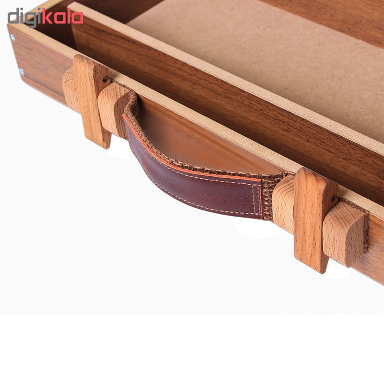 جعبه رنگ چوبی وسیله بسیار کاربردی برای هنرمندان میباشد،شما با کیف رنگ میتوانید تمامی قلموها،کاردک ها،انواع محلول های نقاشی،فرچه و بسیار از لوازم دیگر را داخل کیف قرار دهید.این کیف 2 طبقه شامل قسمت های مختلف میباشد تا بتوانید ابزار های مختلف را در جای مخصوص خود قرار دهید،برای تهیه این جعبه از بهترین چوب و ورق MDFاستفاده شده و یک عدد پالت رنگ روغن داخل جعبه قرار گرفته. طراحی و زیبایی این کیف نظر بسیار هنرمندان را به خود جلب کرده،معمولا رنگ های روغن کیف را سنگین میکنند و حمل آن دست را خسته میکند اما این محصول با دسته پارچه حمل آن را راحت تر کرده اگر به دنبال جعبه رنگ با کیفیت هستید بهترین گزینه برای خرید میباشد